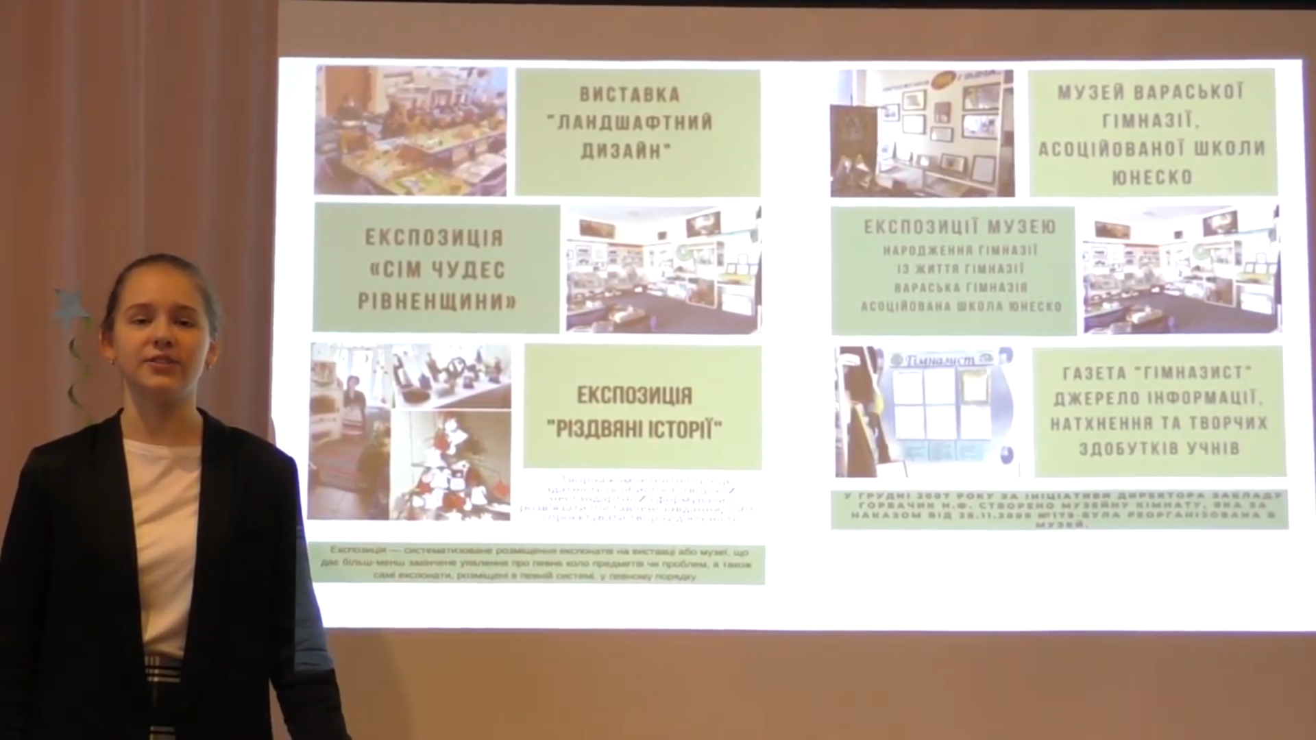 У секції “Музеї історії освіти або історії закладу освіти” була представлена онлайн-екскурсія “Газета “Гімназист”: шлях довжиною в 20 років”. Вітаємо з перемогою (ІІІ місце) ПУХУ Софію, юного екскурсовода, та Тетяну Миколаївну МАСЛЮКОВСЬКУ, керівника музею Вараської гімназії.