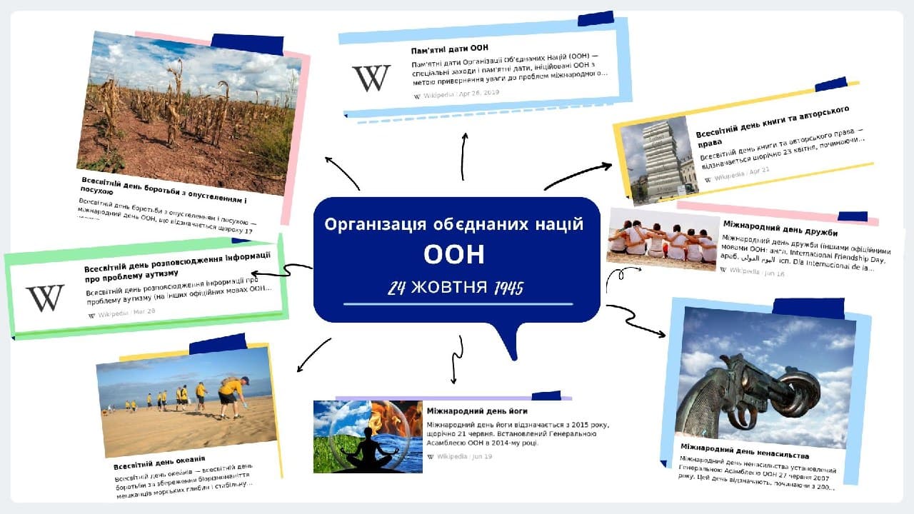1. Виготовлення листівок та постерів до Дня ООН.