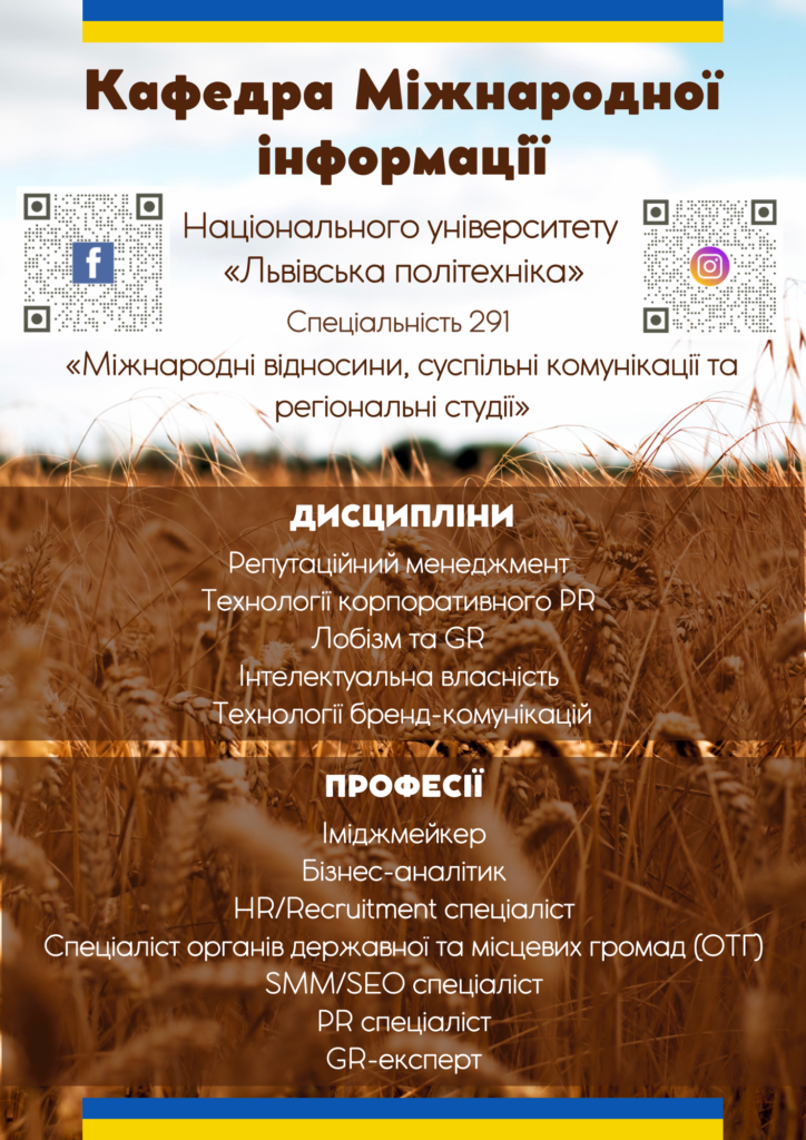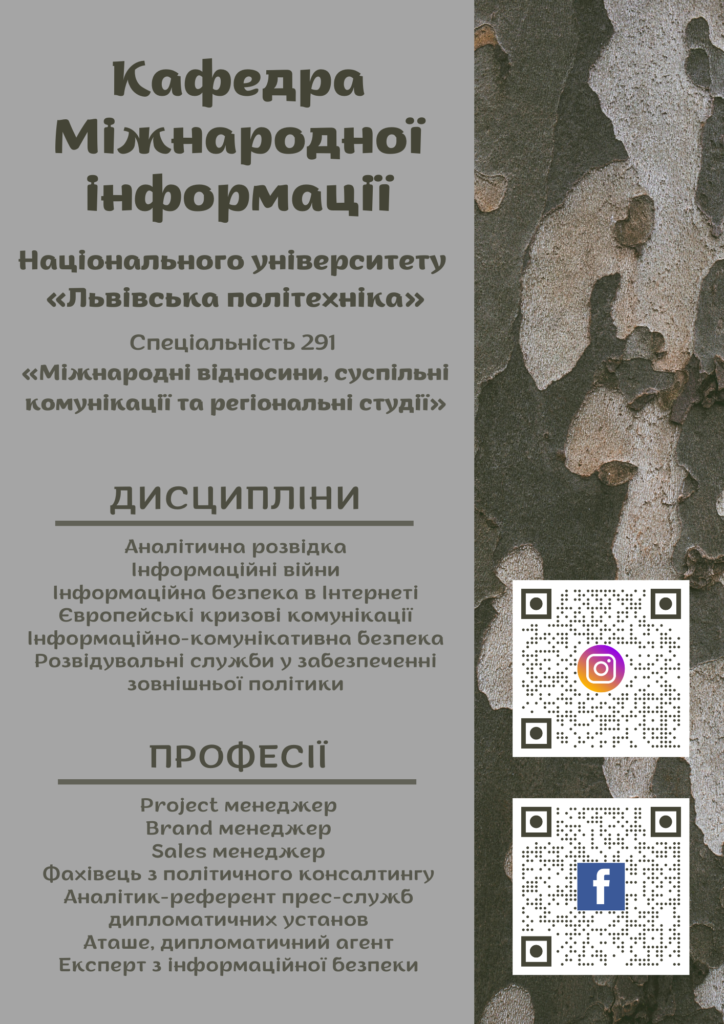 Сподіваємося, що це особливо зацікавить тих, хто прагне стати інформаційним аналітиком-міжнародником в одному із найстаріших технічних університетів Східної Європи, що динамічно розвивається та пропонує конкурентноздатну освітню пропозицію – програму /спеціалізацію «Міжнародна інформація» спеціальності 291 “Міжнародні відносини, суспільні комунікації та регіональні студії”, яку змінили 2022 року, враховуючи особливо потреби у фахівцях інформаційного профілю для боротьби із РФ, одночасно модифікувавши курси, що стануть у нагоді в часі відбудови України!
