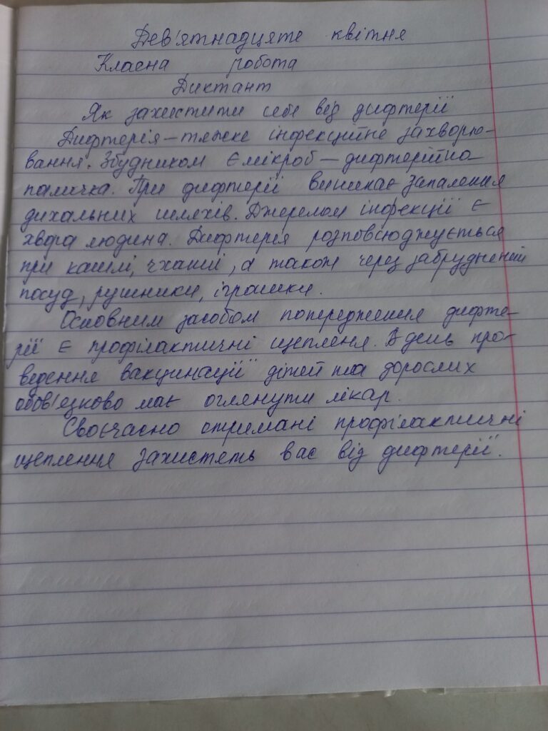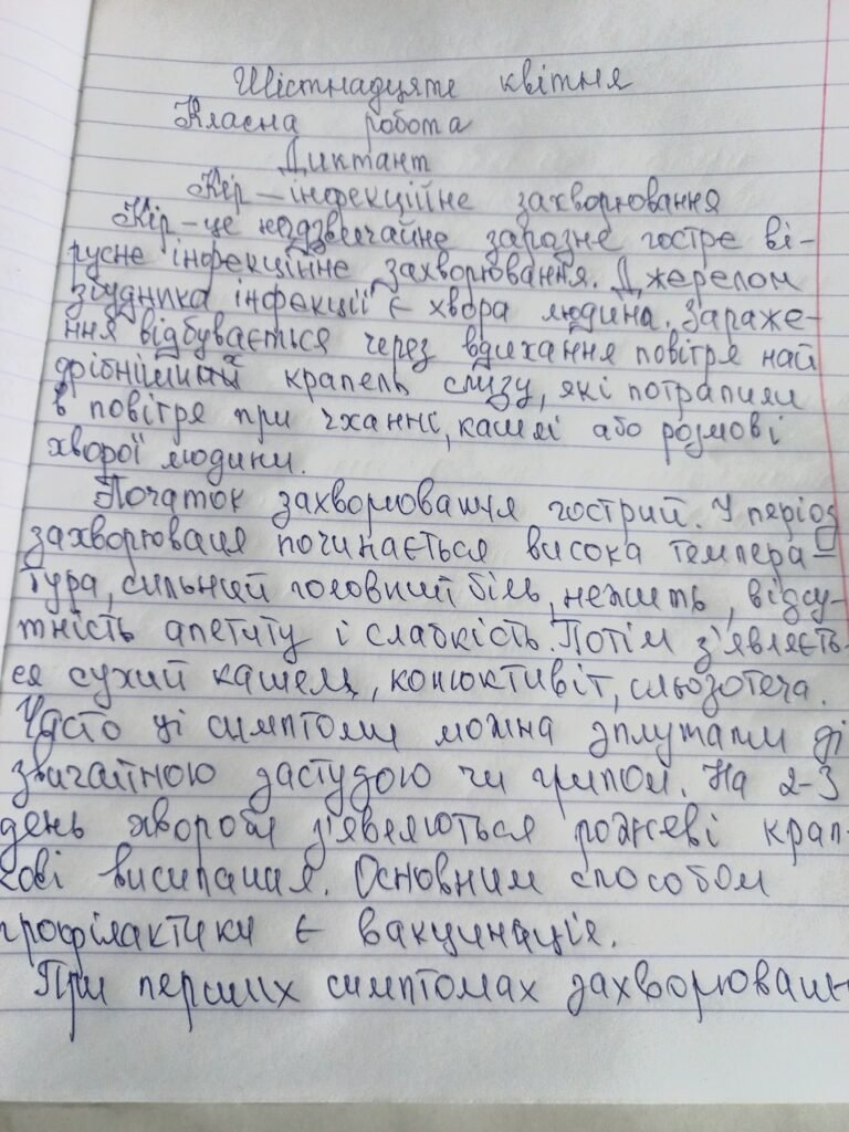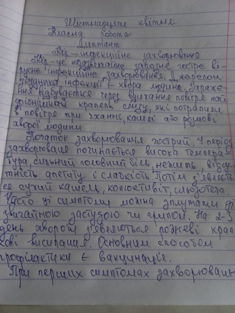 До Всесвітнього тиждня імунізації та у зв’язку з погіршенням епідемічної ситуації щодо кашлюка з метою попередження захворюваності на кашлюк та інші вакцинокеровані інфекції та отримання і закріплення знань про дані інфекції з 22 по 25 квітня проведено диктанти, уроки-лекції, списування текстів серед учнів середніх та старших класів Вараського ліцею №6.