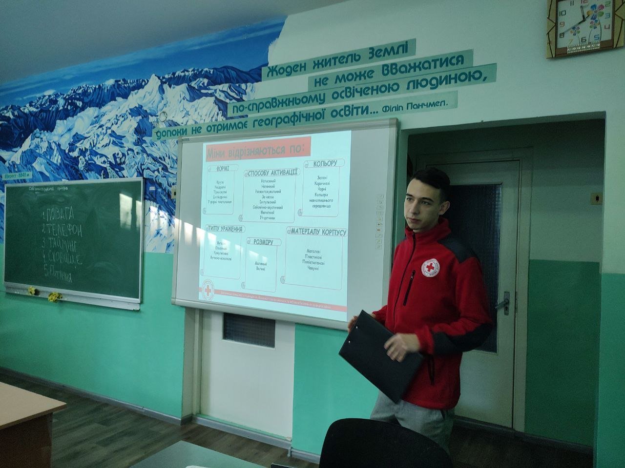 19 та 20 грудня для учнів 5, 6-А та 7-Б класів інформаційно-роз’яснювальні уроки з мінної небезпеки провів наш випускник, нині волонтер-інструктор з мінної небезпеки в рамках програми “Безпечніша поведінка та підвищення обізнаності про ризики мін і вибухонебезпечних залишків війни” Максим Герук.