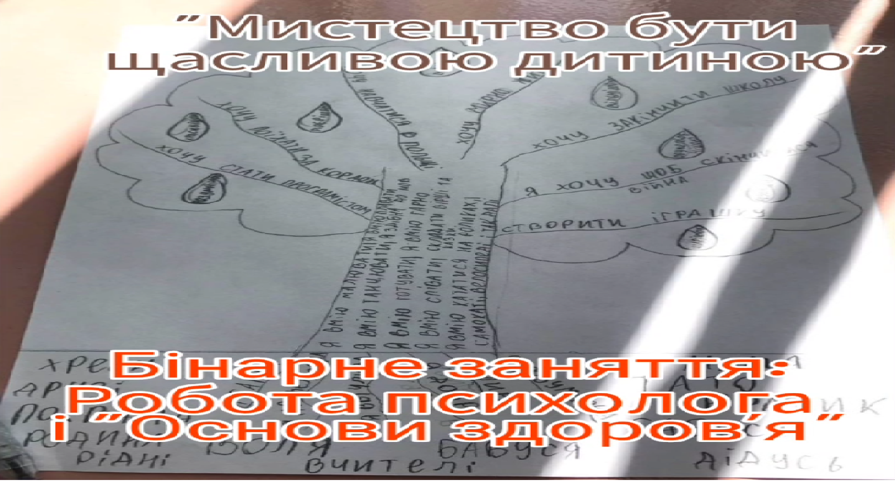 Психологічна рубрика «Мистецтво бути щасливою дитиною» у поєднанні з уроком основи здоров’я. Щаслива дитина має бути в ресурсі. Учні 5-А та 5-Б класів створювали дерево власних ресурсів, що додає кожному сили справлятися зі складними моментами життя, що допомагає рухатися вперед до своєї мети, незважаючи на труднощі і при цьому відчувати себе впевнено, енергійно, і з оптимізмом дивитися в майбутнє (cпівпрацювали: психолог Л. МАСЛЮКОВСЬКА, студентка-практикантка спеціальність «практична психологія» УДПУ ім. М. П. Драгоманова, Д. СМОЛЯНСЬКА, вчитель ОЗ Л. ТОЧИНСЬКА).