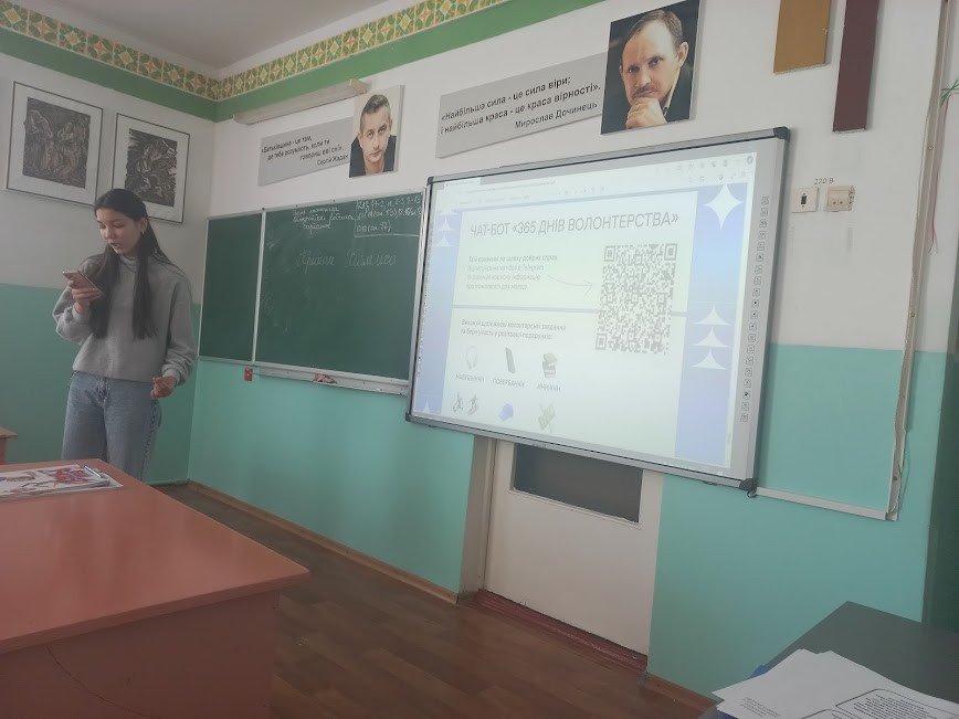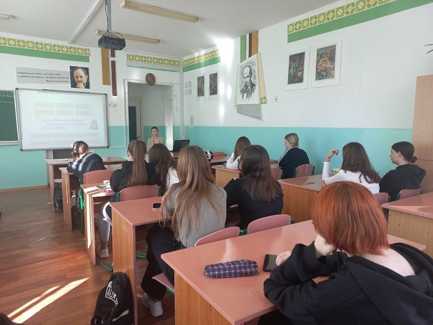 На паралелях 8-10 класів проведено «Шкільний урок волонтерства» — ініціатива, що покликана надихнути підлітків займатися волонтерством. У межах проєкту учні дізналися, як маленькими кроками досягти значних результатів, та опанували інструменти, які допоможуть школярам долучитися до волонтерського руху.
