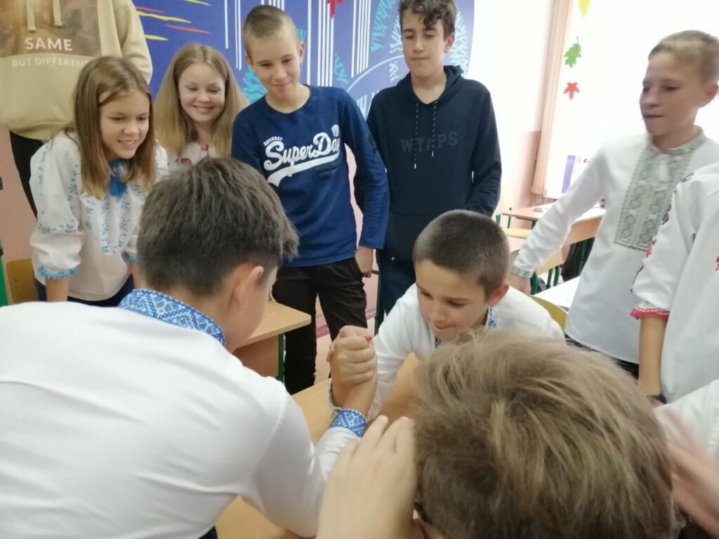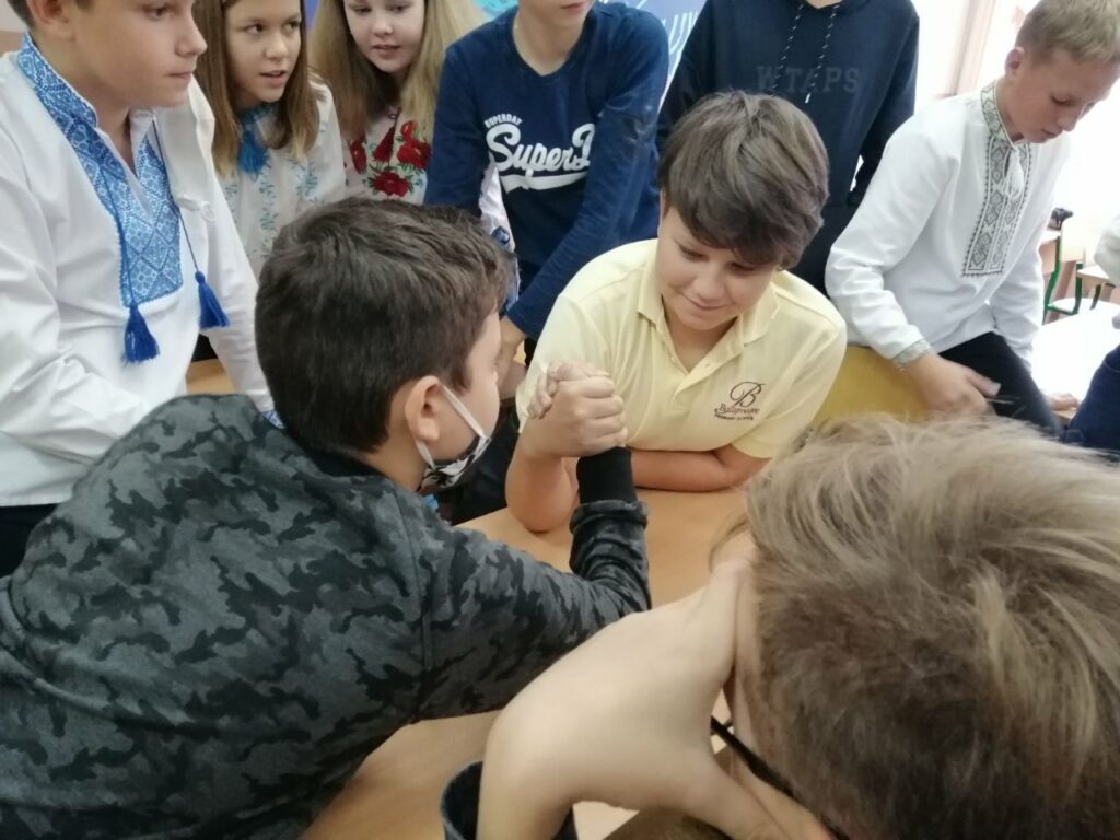 У 7-В пройшов позакласний захід “Козацькому роду немає переводу” ⠀ Провели конкурси: “Відгадай назву приправи”, “Бій на руках”, “Одягнися в козака”, “Збий кеглі”. ⠀ Подивилися мультфільм: “Як козаки сіль добували”.
