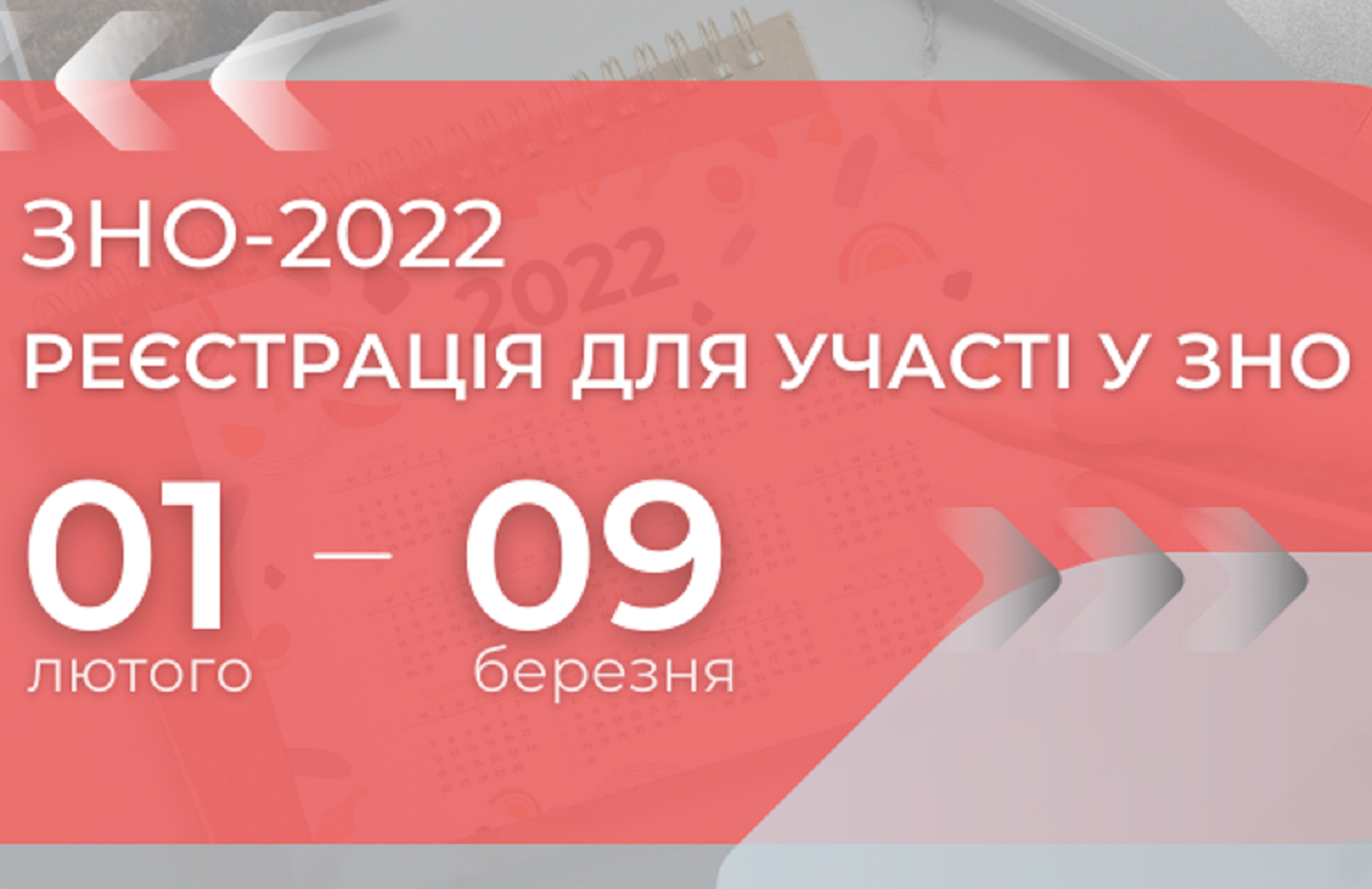 Реєстрація на тестування триватиме до 09 березня 2022 року. Водночас комплекти реєстраційних документів учнів (слухачів, студентів) для проходження державної підсумкової атестації у формі ЗНО керівники закладів освіти мають надіслати до 01 березня 2022 року.