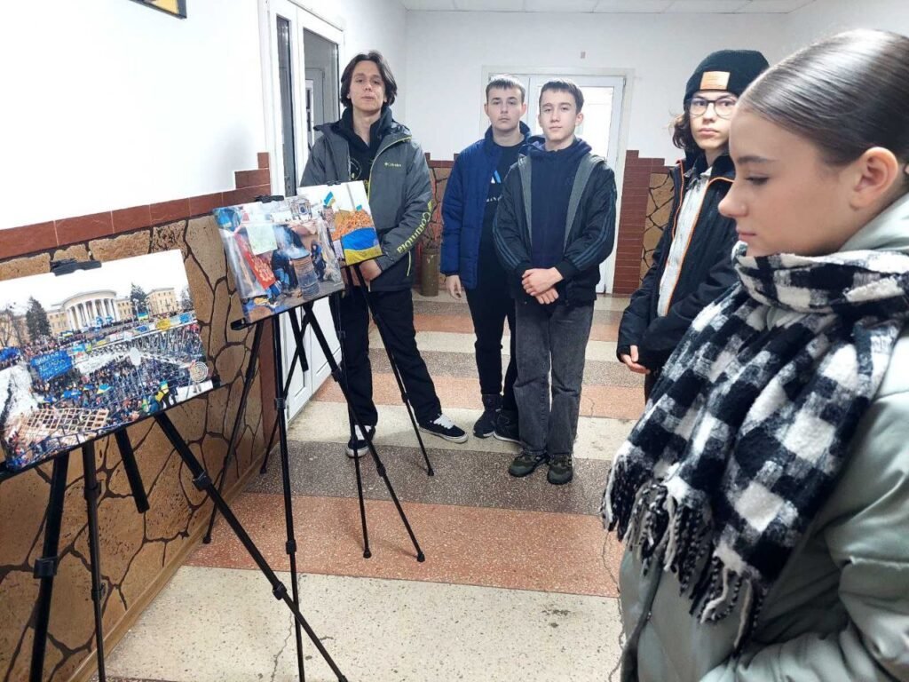 Знайомлячись із експонатами виставки, говорили про утвердження в Україні ідеалів свободи і демократії, вшанування патріотизму й мужності громадян, які стали на захист демократичних цінностей, прав і свобод людини, національних інтересів держави та її європейського вибору.
