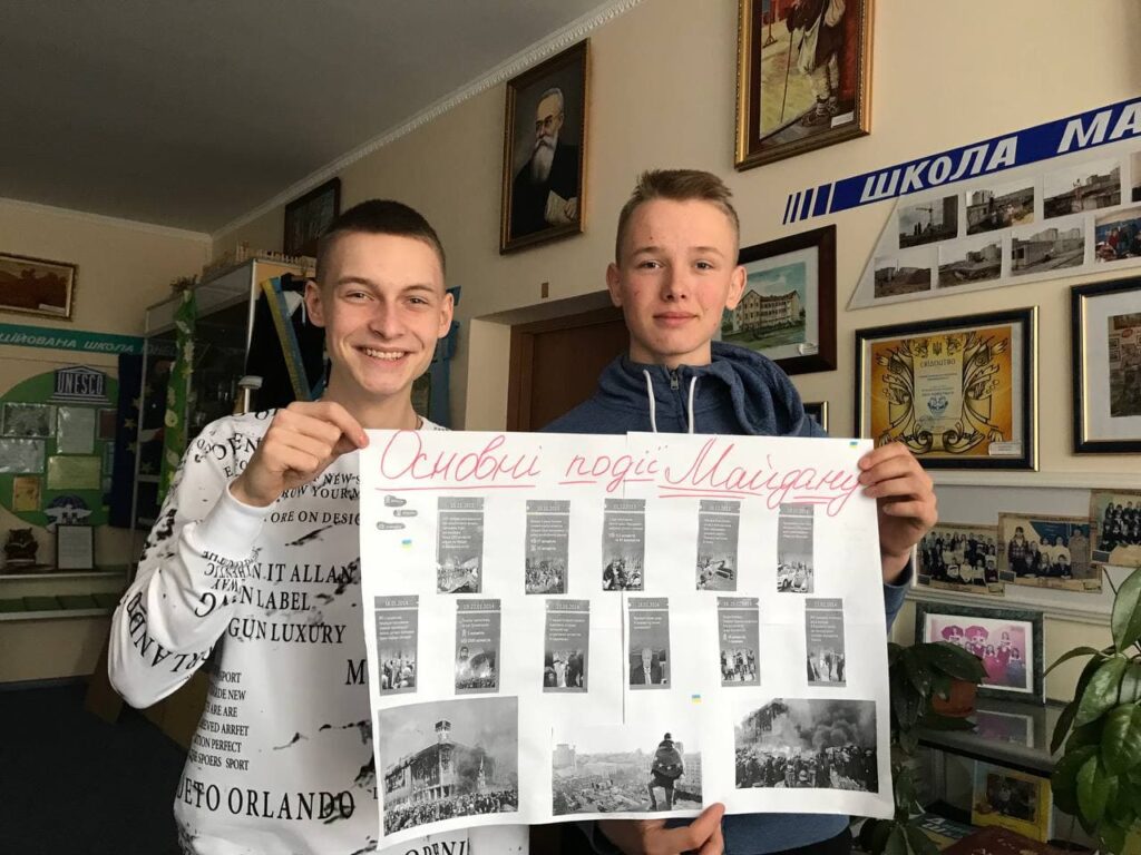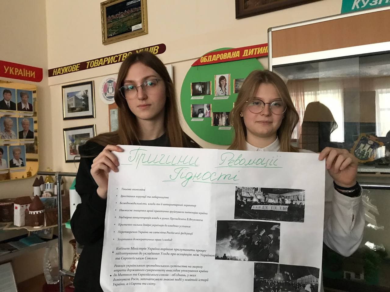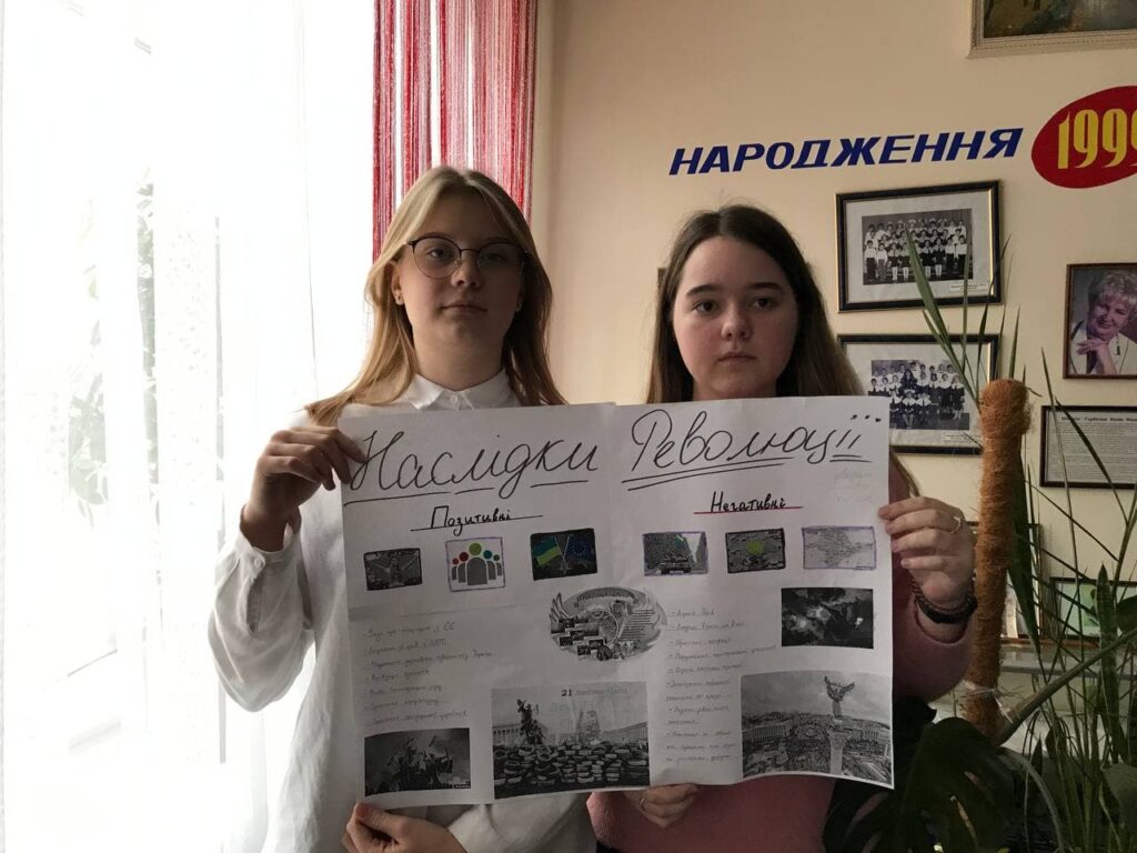 Вшановуючи пам’ять героїв Небесної Сотні, учні 9 – А класу випустили історично-інформаційний листок “Революція Гідності: хроніка подій” (учитель: Маслюковська Т. М.)