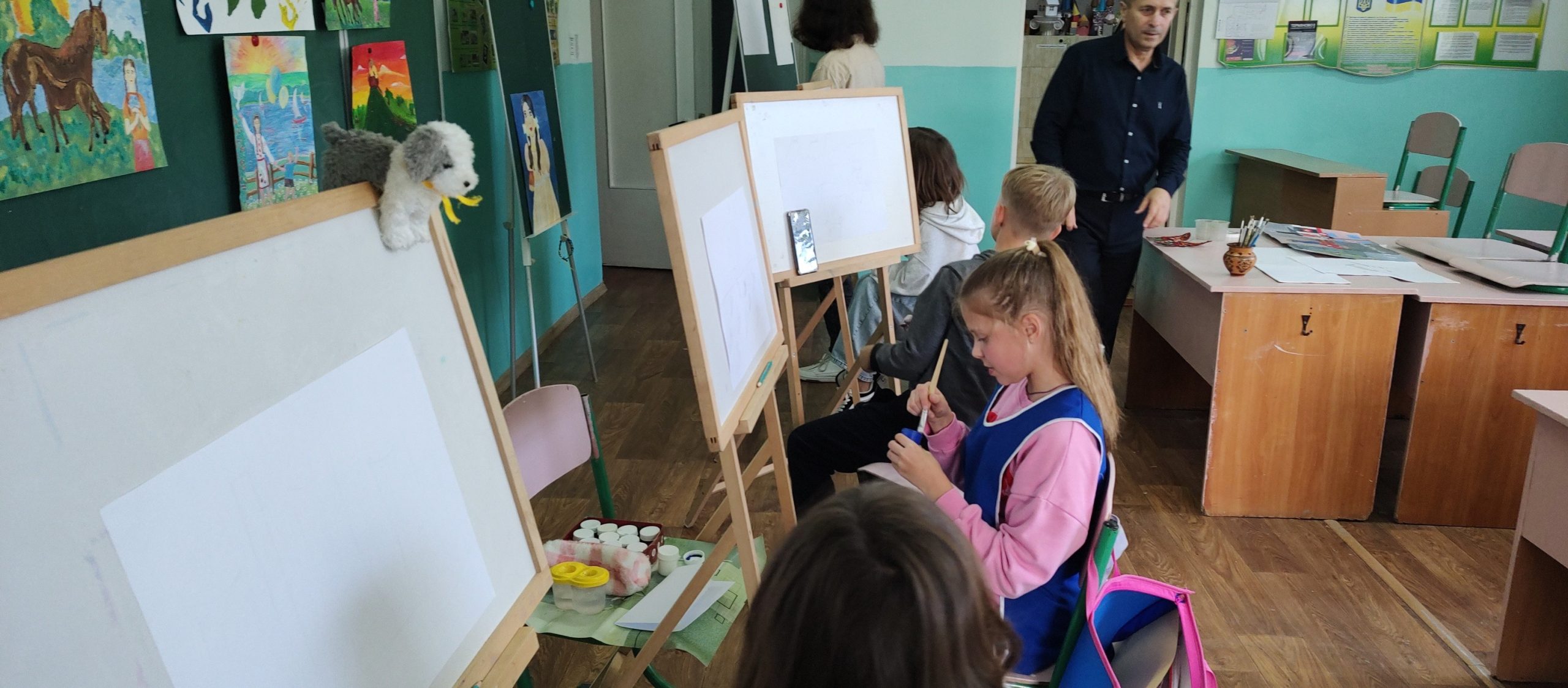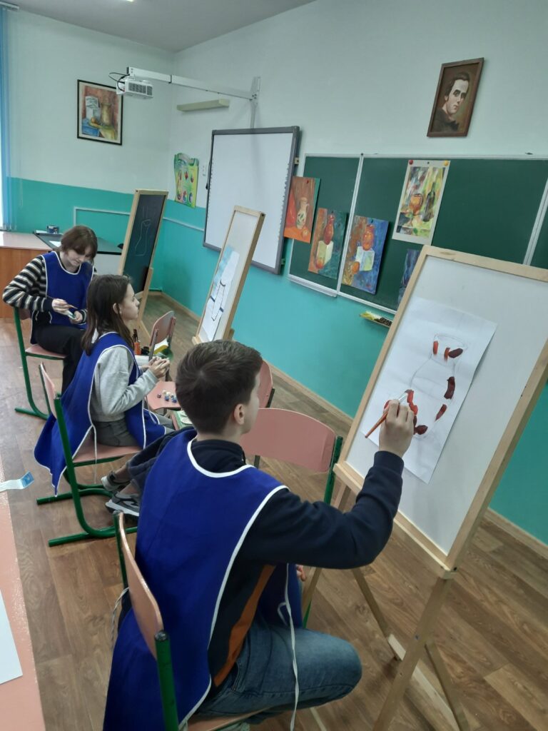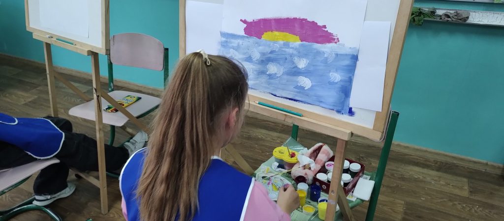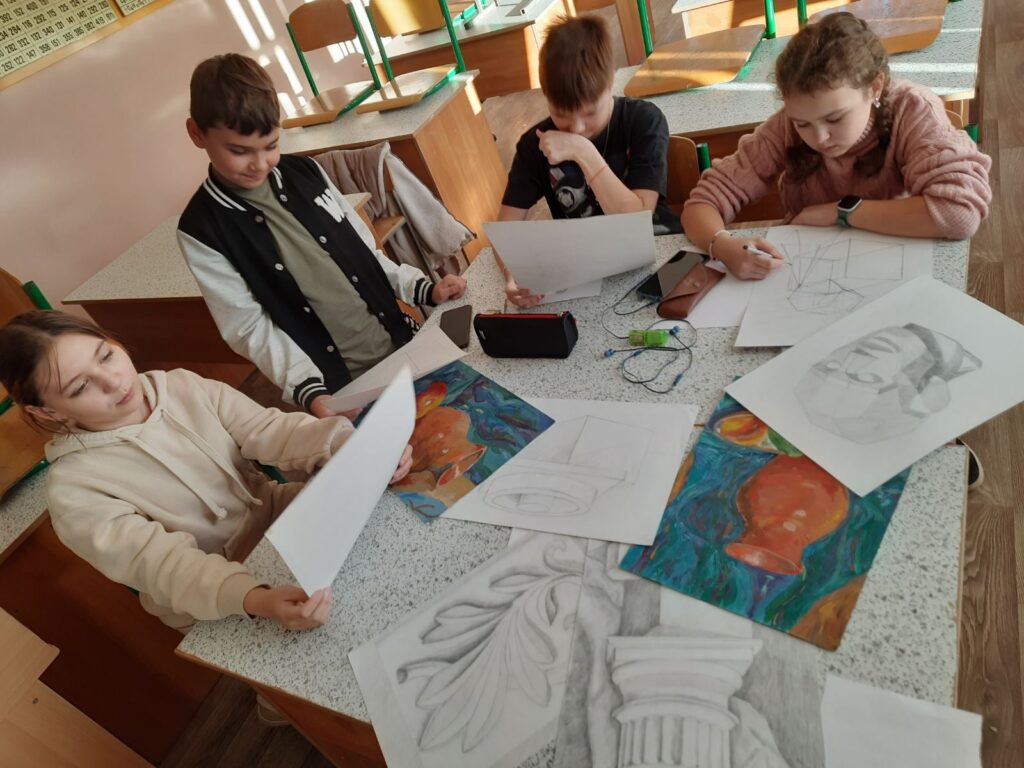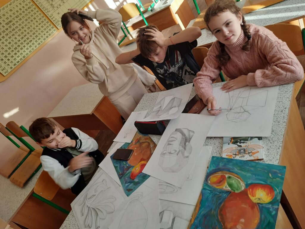 На гуртку “Юний художник” учні працюють над створенням тематичних композицій та творчих проєктів.