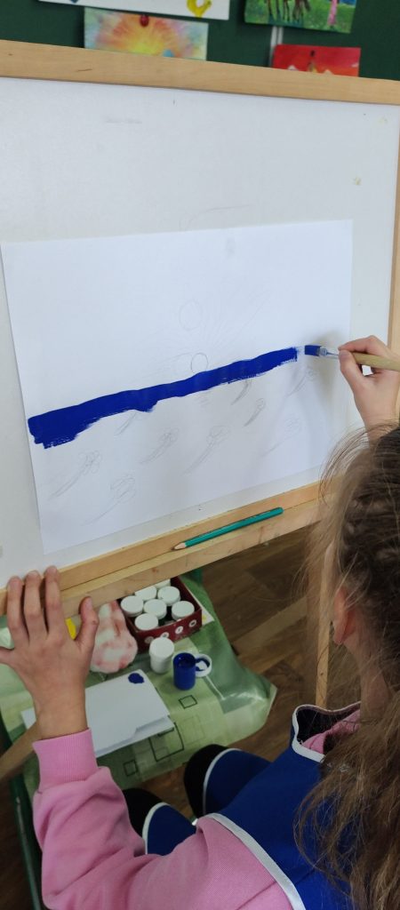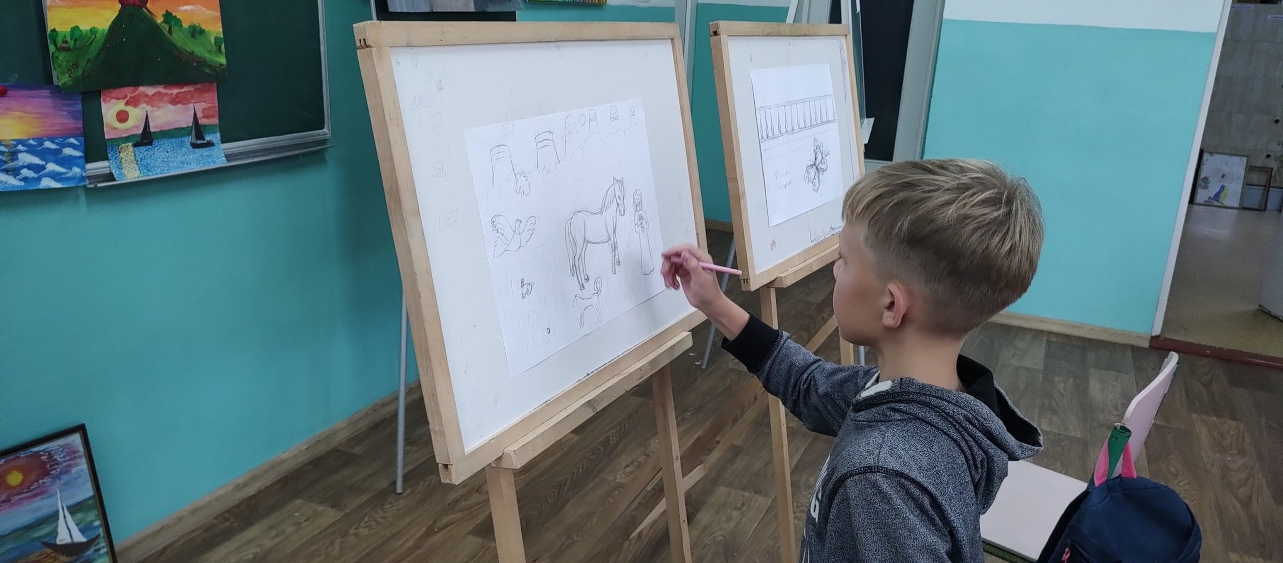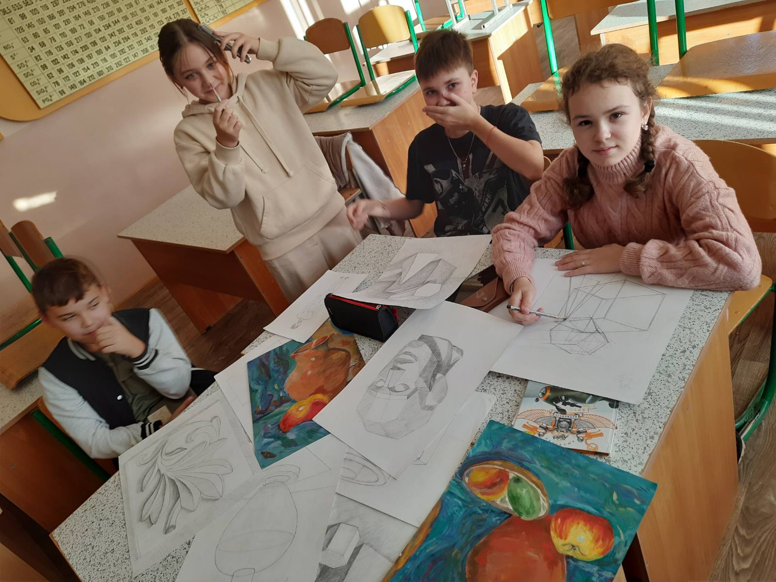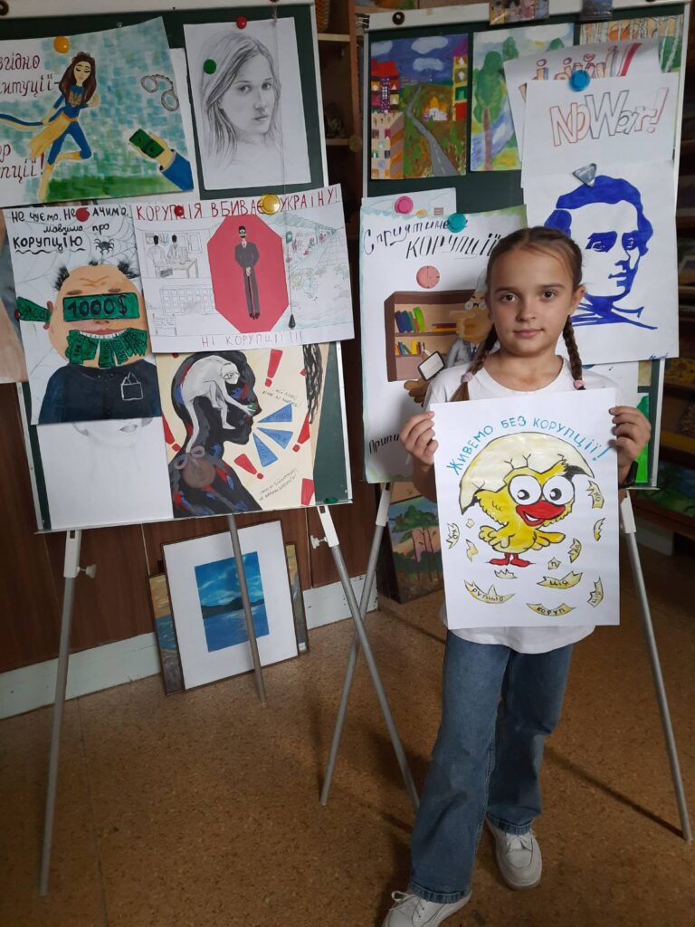 На гуртку “Юний художник” учні працюють над створенням тематичних композицій та творчих проєктів.