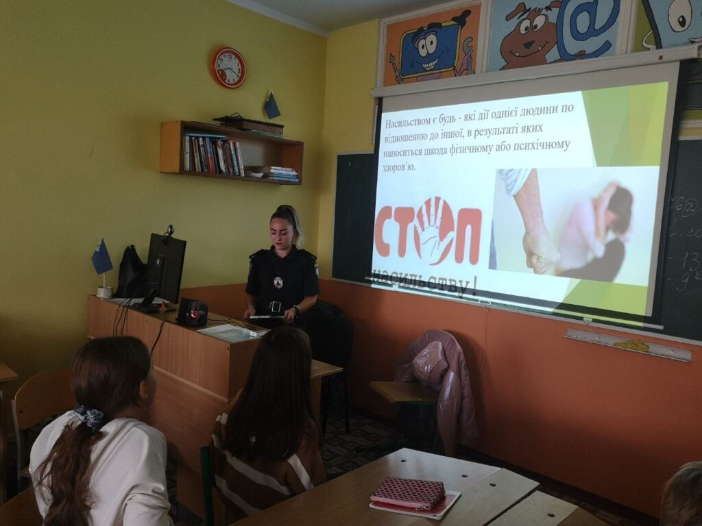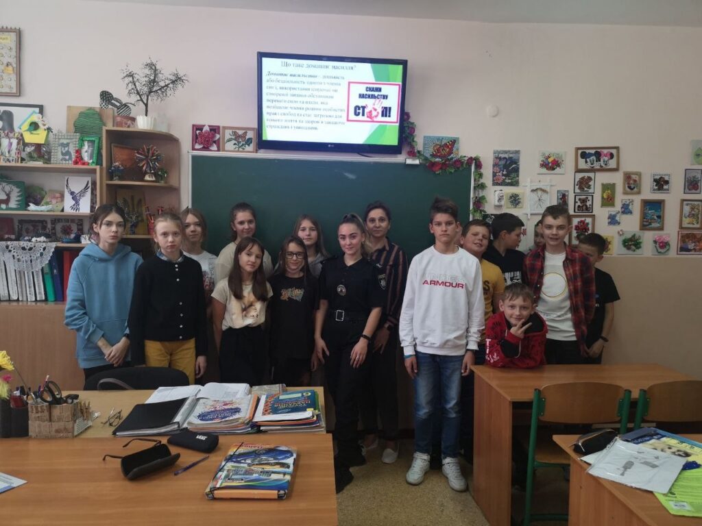 В рамках Всеукраїнської кампанії “16 днів проти насильства” курсанткою 2 курсу Національної академії внутрішніх справ Анною Савельєвою та психологом Людмилою Маслюковською, у 7-х класах проведено інформаційно-просвітницькі уроки з метою профілактики щодо запобігання домашньому насильству.
